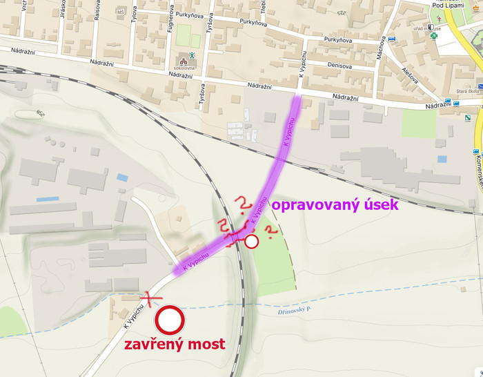 Od středy 23. dubna bude probíhat oprava ulice K Vypichu v úseku od zdravotního střediska až téměř k zavřenému mostu.