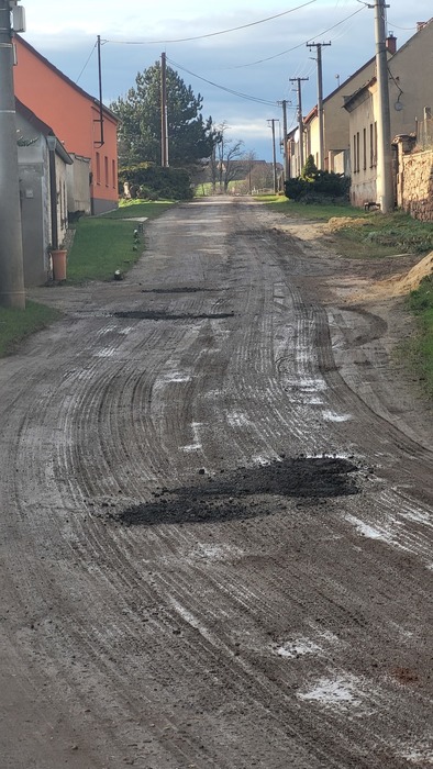 Na jaře, až budou teploty vyšší, provedeme opravy již teplou asfaltovou směsí nebo recyklátem spolu se zálivkou či podobným řešením, aby se zlepšila průjezdnost a vydrželo to déle. Samozřejmě přál bych si nový asfaltový povrch i s rekonstrukcí podkladních vrstev, takové řešení je extrémně finančně nákladné, takže takovým způsobem zvládneme cca 300-500m ročně když dostaneme dotaci, bez dotace tak 100 metrů.