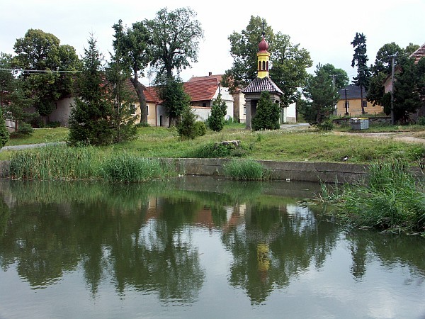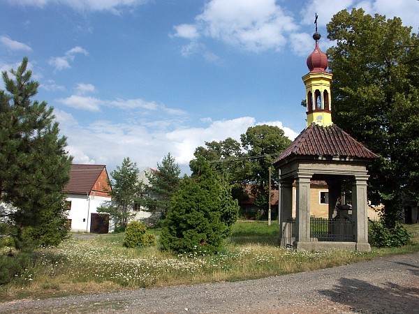 Litý kříž na kamenném podstavci byl postaven r.1837. Roku 1843 bylo dovezeno z Lužné dřevo na postavení kapličky. Kaplička dřevěná byla postavena r.1846 a zděná roku 1915.