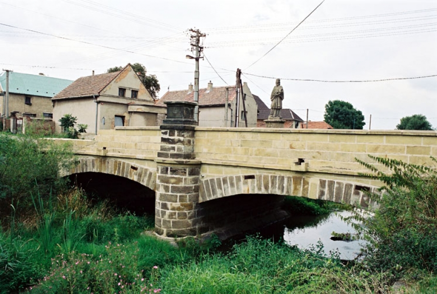 Ve Tmáni, která je dnes součástí obce Zlonice, se nachází starý klenbový most o dvou otvorech světlosti 5,7 metru. Stavba je ze 60. let 19. století a překonává Zlonický potok. Klenby jsou kamenné z pískovcových kvádrů tloušťky 0,45 metr metru. Volná šířka na mostě je 5,5 metru, jeho celková šířka je 6,34 metru. Zábradlí je vyzděné a omítnuté. Nad středním pilířem jsou na obou stranách postaveny podstavce pro sochu a kříž. Ještě na počátku 90. let 20. století tu byl alespoň fragment sochy sv. Jana Nepomuckého. Nad vrcholy kleneb jsou čtyři kamenné chrliče. V roce 1993 v rámci velké opravy mostu byla provedena hydrofobizace všech kamenných částí mostu. Opravena byla socha i kříž, avšak ještě v roce 1993 došlo k úplnému zničení obou plastik vandaly.